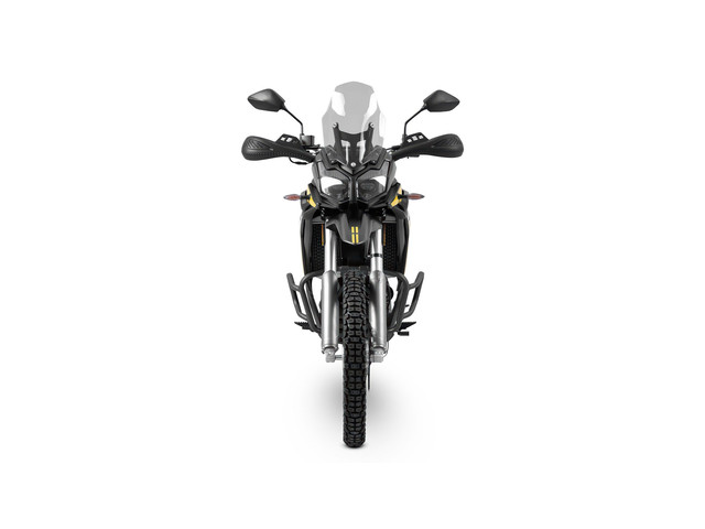 De motor staat op een robuust stalen buizenframe, dat bestand is tegen zware omstandigheden op zowel gravel als asfalt. De vering bestaat uit een 41 mm upside-down voorvork met een veerweg van 240 mm, en een achterste mono-schokdemper met instelbare veervoorspanning, eveneens met 240 mm veerweg, wat zorgt voor een stabiele en comfortabele rit op oneffen terrein.