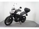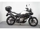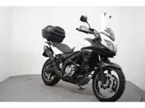 Nette en goed onderhouden Susuki DL 650 V-Strom voorzien van valbeugels met mistlampen, topkoffer met rugkussen, tankpad, LED knipperlichten, middenbok, carterpanbeschermer, opzetruit, standaard verbreder, handkappen en handvatverwarming.