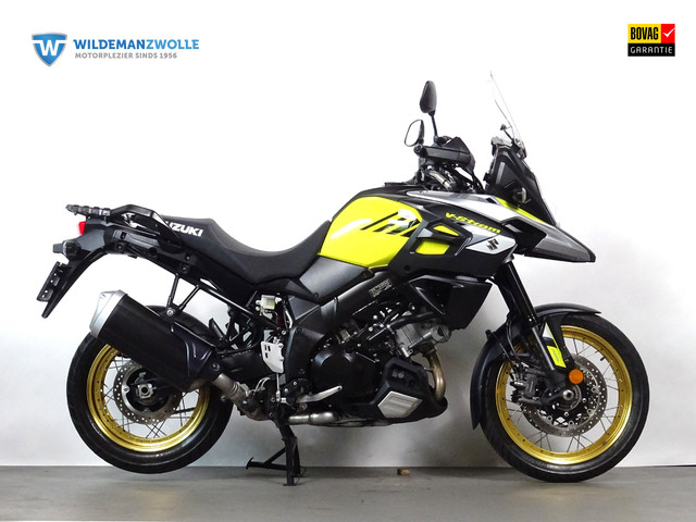 Toffe DL1000 V-Strom XT van 2018 in de klassieke gele Suzuki kleurstelling.