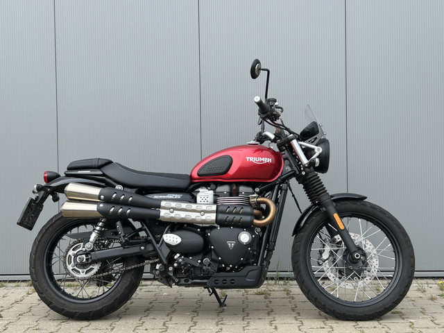 Nagenoeg nieuwe Triumph Street Scrambler 900 met 65pk, welke afkomstig is van de eerste eigenaar en altijd is onderhouden bij de Triumph Dealer. Laatste onderhoud was bij 8.700 kilometer. Opstappen en genieten!