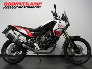 Goed uitgeruste Tenere met ABS, vol vermogen (A2 / 35 kW mogelijk), hoge + lage Touratech valbeugels, Touratech Expedition Engine Guard, Ohlins instelbare achterschokbreker en korte kentekenplaathouder.