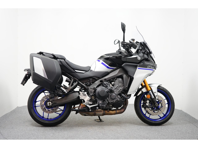 Een zeer complete en mooie Yamaha Tracer 9 GT + ABS met Handkappen, Kofferset, Middenbok, Cruise Control, Elektrisch verstelbaar windscherm, Handvatverwarming, Navigatie via Bluetooth, Key-less Ride, Instelbare vering, Comfort seat en Y-AMT automatische transmissie.