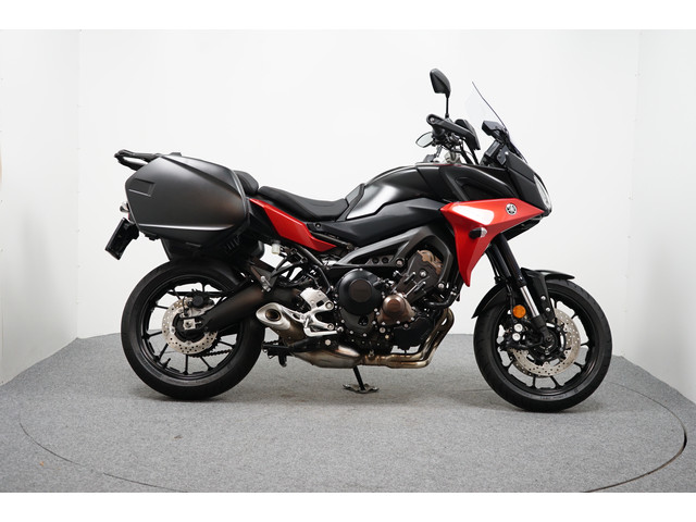 Een in zeer mooie staat verkerende Yamaha Tracer 900 ABS met Traction control, Comfort buddy voor + achter, Kofferset, Topkofferrek, Verstelbaar windscherm, Handvatverwarming en een middenbok.
