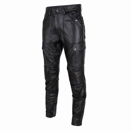 Fraaie zwart leren motorbroek van fullgrain rundleer voor heren.