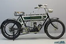 Minerva 1907 4 ½ HP 577 cc side valve V-twin frame # 2081 engine # 30627 Mr Sylvain de Jong, born in Amsterdam on 5 January 1868, moved at the age of 13 with his parents and two brothers to Brussels. After working for some years as a journalist, he went to the U.K. to study the safety bicycle production. In 1895, S. de Jong, his brothers and other investors started a factory in Antwerp, to produce and repair bicycles. For these bicycles, they chose the name “Mercury”. Only two years later, after ...