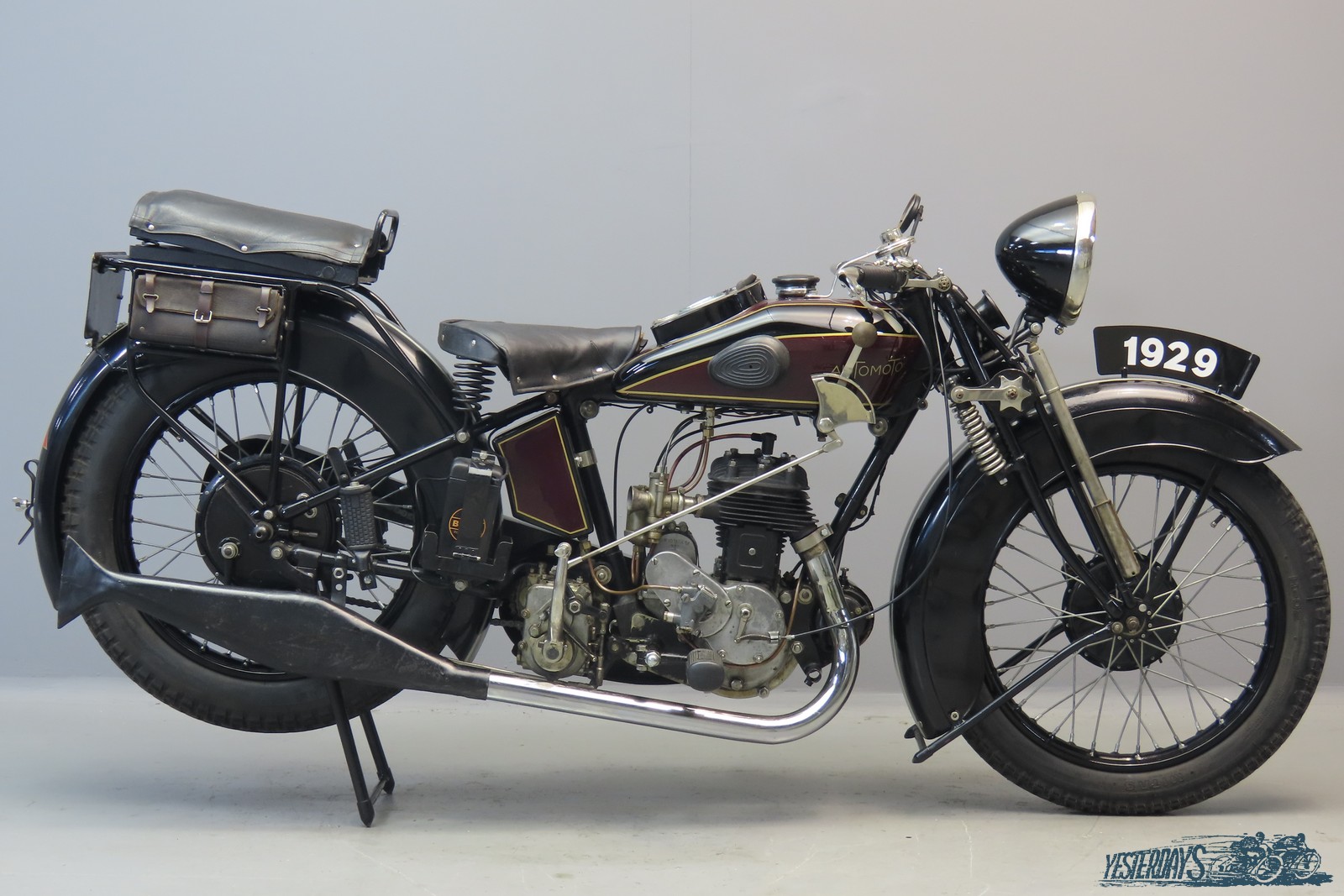 Automoto is one of the pioneer French makes: at the end of the 19th century a group of bicycle parts manufacturers in St. Etienne merges into one company that gets the name Automoto. Soon production of complete cycles, motorised tricycles and automobiles is taken up, next to various other products such as washing machines, hunting weapons and sundry agricultural machinery. During the 1914-1918 war the company focusses on munitions manufacturing and by the end of 1922 motorcycle production is taken up again with a light two stroke model for which the Evans Powercycle has been the inspiration. In the course of the twenties four stroke machines are added to the programme and by 1929 the model range includes two stroke and four stroke models from 175 to 500 cc.