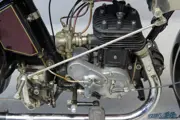 The machine is fitted with substantial internal expanding brakes (164 mm diameter front and 194 mm diameter rear) and the petrol tank capacity is 12,5 litres. Top speed, as quoted by the factory, is about 95 km/h. A very prominent feature is the elaborate tank top instrument panel that holds an 8-day Jaeger clock, amp gauge and speedo and a light switch. Further accessories include front fork mounted tyre pump, rear view mirror, Meilleure pillion seat, G.G steering damper and Marchal full electric lighting with Vibror claxon. This older restoration machine comes with current registration. She’s one of the last true Automoto models; in 1930 the firm is taken over by Peugeot and soon the range of machines will be inspired by comparable Peugeot models.