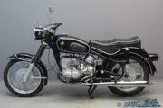 In 1955 BMW introduces a new line of twins with a completely redesigned frame with trailing fork rear suspension and Earles fork front suspension. The final drive shaft is no longer exposed but is enclosed in the right arm of the trailing forks. All three new models, the 500 cc R50, and the 600 cc R60 and R69 have 18 inch wheels in place of the earlier 19 inch ones, twin leading shoes in the front brake, smaller mudguards and larger silencers. The petrol tank is reshaped, and the traditional sprung saddle can be replaced by a stylish dual seat that is an optional extra. The R 69 is a somewhat boosted version of the R60: with 35 hp it develops an extra 7 horses and it has a higher compression and maximum revs than its brother. In 1960 the R69 is further developed and refined and marketed as the R69S. This is the first production motorcycle to have a hydraulic steering damper. Its engine, which runs up to 7,000 rpm to develop 42 hp, is fitted with a vibration damper on its crankshaft. As with all BMWs, the choice of materials, the excellence of workmanship and the quality of the finish are all of extremely high standard. The engines are also remarkably silent, no intake whirr, no mechanical clatter, no conspicuous exhaust noise. The R69S has a compression ratio of 9.5:1, can reach a top speed of about 175 km/h and weighs a solid 202 kg. Between 1960 and 1969 11,417 machines are sold (source: Bahnstormer, L.K.J. Setright). The R69S becomes very popular in the U.S. A quote from a road test in Cycle World of September 1966: “(…) And then there is the ride. One would expect such a big motorcycle to be a handful, but this is not the case. Once it is rolling, the machine steers lightly and tracks well. We also discovered that it is a very easy machine to ride at a snail’s pace in traffic. Much of this lightness of feel and slow-speed stability is owing to the low centre of gravity offered by the opposed twin design. The soft ride is further enhanced by the big dual seat, comfortable both for rider and passenger. At faster speeds, the machine stays firmly attached to the ground and doesn’t bounce the rider about the way more “competitive”(whatever that means) roadsters do when surfaces get rough or uneven.” From 1967 on new long-travel telescopic front forks, the forerunner of the /5 series front forks, are optional equipment for BMWs on the U.S. market. The model designation for a R69s with these new forks becomes R69US.