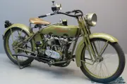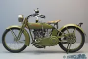 It takes the Harley-Davidson Co. about 12 years to develop their motorcycles from a single cylinder belt driven single 3 HP machine to the 45 degree V-twin with 3-speed countershaft gearbox that is marketed in 1915. This sturdy 989 cc (84x89mm) machine becomes a popular choice for motorcycle buyers all over the world, private enthusiasts as well as police forces, postal services and other government bodies. The twin can be ordered with magneto ignition (“F”) or battery and coil ignition (“J”). The engine delivers 17 HP @ approx. 3,200 rpm. The OHV inlet, side valve exhaust concept is used till 1930, when HD chooses the full side valve engine concept for all their V-twins. In 1920 a new factory building is completed; this makes HD the largest motorcycle factory in the world with 2,400 employees and established dealerships in 67 countries. Harley-Davidsons are fast becoming famous for their power, comfort and reliability.