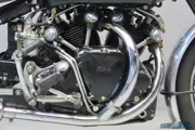 Ribbed brake drums were fitted to cope with the increased performance, while in a marketing masterstroke Vincent specified a 5″-diameter ‘150mph’ speedometer and black-finished engine cases for his new baby – the Black Shadow.