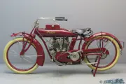 Indian’s first, 38.61ci (633cc) v-twin appears in 1907 with an engine clearly derived from that of the single, though mechanical inlet valves – introduced for 1908 – are an early improvement. The twin’s rear cylinder continues to form part of the frame until 1909 when a loop frame of the type favoured by rivals Harley-Davidson is adopted. The Springfield Company’s first ‘Big Twin’ debutes that same year displacing 61 ci.