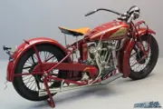 The overwhelming enthusiasm for the new 1920 Indian Scout caused many riders, dealers and overseas agents to push the factory to design a larger, heavyweight v-twin along Scout lines with more speed and power, especially suited for sidecar work. Many factory executives supported the idea because the still popular PowerPlus began to look a bit old-fashioned. Scout-designer Franklin retired to the drawing board and came up with a new model that would be known as the Chief. The new Chief was announced in the fall of 1921 and was essentially an enlarged Scout with many PowerPlus (or Standard as it was now called) features: engine, front forks, wheel assemblies and other parts were basically similar to the Standard, with the addition of the Scout-type helical gear drive and unit construction of 1000cc engine and gearbox. The Chief was a successful model from the start and for the 1923 season a 1200cc Big Chief model with bore x stroke dimensions of 82x112mm was added to the range. In 1927 the Chiefs got bigger mudguards, improved muffler (the factory claimed a 50% reduction in exhaust sound), Alemite fittings for lubrication, valve release through tank and removable cylinder heads. From 1929 on only the 1200cc version was available and the “Big Chief” name was dropped. A special feature of the 1930 model year was the fitting of cast aluminium tanks. These tanks were only used in 1930 and for the early 1931 models. After stocks were used up, the company reverted to the usual sheet metal tanks. By the end of the 20s the 101 Scouts were the bestselling Indians so Chiefs of that period are relatively rare, certainly the 1930 models with aluminium tanks.