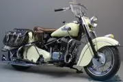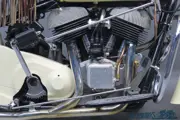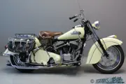 In 1940, 39 years after the company’s founding, Indian goes all-in on the skirted fender design, outfitting Scouts, Chief and Fours with the new tinware. After World War 2 only the Chief makes a return; supposedly a stop-gap measure until lighter, more advanced models come online. But a series of financial and engineering missteps doom the company and Chiefs are still being sold when the Springfield, Massachusetts factory shuts its doors in 1953. However, the postwar Chief keeps its ground as a luxury touring motorcycle; in 1950 telescopic front forks are introduced and the 1951 brochure proudly states “America’s fashion motorcycle! Newly designed, metered-action “aerodraulic fork” tuned with rear suspension gives smooth “cloud ride” comfort – 83% of weight sprung for greater steadiness, control and safety. New cushion drive “torque evener” sprocket, new 40 horsepower 80 cubic inch Blackhawk engine! The 25th great Indian Chief model – a king on and off the highway!”