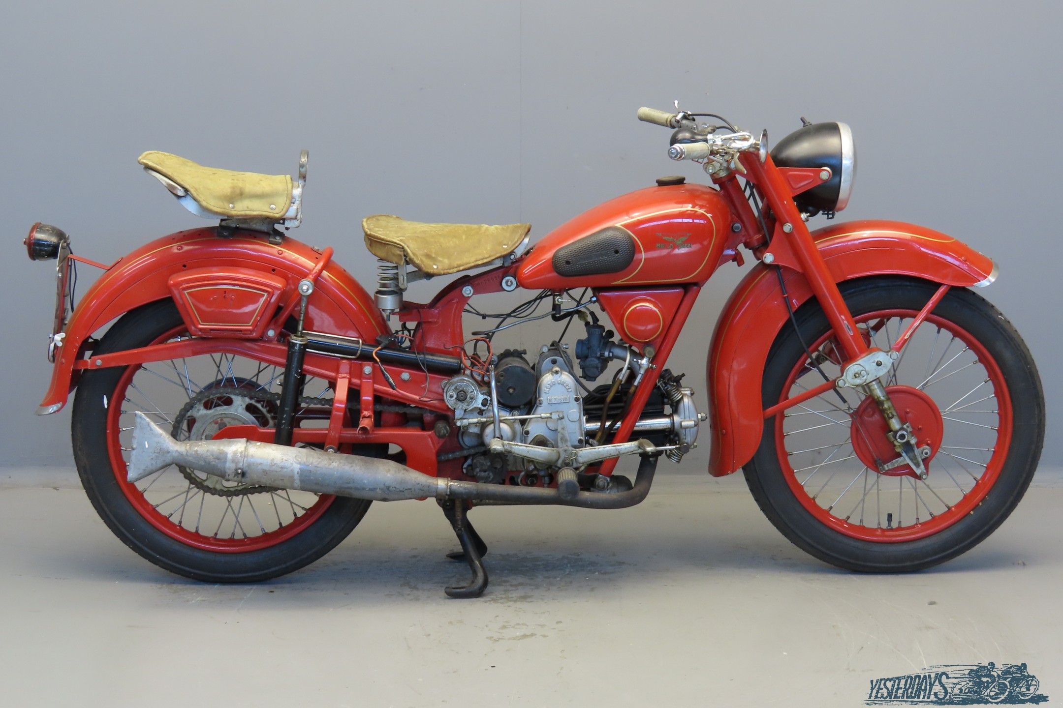 In 1932 Moto Guzzi had decided to move into the lightweight market. At first this was the 175cc class that enjoyed various advantages in taxation and driving licence regulation, but when these were abolished the public interest in the 175cc class waned and Guzzi decided to increase the displacement of its little P175. At first the step was made to a 232cc machine but in 1937 the PL was introduced with 247cc capacity and a frame consisting of tubular and pressed steel elements.