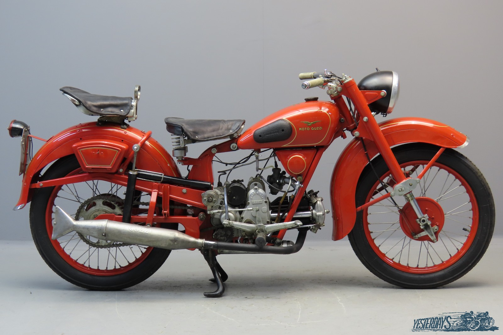 In 1932 Moto Guzzi had decided to move into the lightweight market. At first this was the 175cc class that enjoyed various advantages in taxation and driving licence regulation, but when these were abolished the public interest in the 175cc class waned and Guzzi decided to increase the displacement of its little P175. At first the step was made to a 232cc machine but in 1937 the PL was introduced with 247cc capacity and a frame consisting of tubular and pressed steel elements.