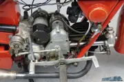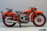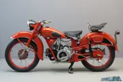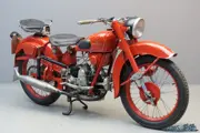 Later versions of this model were among others the Egretta (egret) and the Ardetta (small heron). These models had a three speed gearbox and in 1939 a modernised version was marketed, the 4-speed Airone (heron) that would become very popular and would be produced up to 1957. The Airone was available in Turismo and Sport versions. The Sport had aluminium Borrani rims instead of chromed steel ones, 25mm instead of 22mm carburettor, sports handlebars, higher compression ratio and different camshaft. This resulted in a 12hp power output @ 5,200rpm, 2.5hp more than that of the Turismo. In 1947 the Airone was fitted with “upside down” hydraulic forks designed by Carlo Guzzi and with hydraulic rear dampers. At the end of 1948 the model got a new aluminium cylinder head assembly with enclosed valve gear.