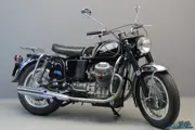 The first motorcycle to use Guzzi’s v-twin appeared in the late 1960s in the form of the 703cc V7, and this remarkable engine would prove exceptionally versatile, being enlarged beyond 1,000cc and powering machines of all kinds ranging from the super-sports Le Mans to the automatic transmission Convert tourer. The V7 was developed into the 748cc V7 Sport and in 1972 a heavier touring version of the V7 came out, the GT 850. The original V7 had a power output of 40 HP and a four speed gearbox, the GT 850 delivers a respectable 64.5 HP @ 6.500 rpm, has a compression ratio of 9.2 :1 and is fitted with a five speed gearbox. The machine weighs 230 kg and has a remarkable top speed of over 190 km/h. The GT 850 is a sturdy and reliable machine that has a practical shaft drive. Its engine produces lots of torque and the ride is very comfortable so this machine can truly be called a “Grand Tourer”. A notable feature is the 4-leading shoe front brake. This model was produced between 1972 and 1974.