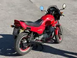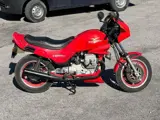 346 cc, 36 pk, viertakt, 5 versnellingen – tweecilinder viertakt motor, luchtgekoeld.