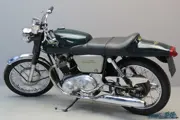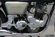 The new Commando was launched in 1967 and used the preceding Atlas model’s 750cc engine and AMC gearbox. It was an instant hit with the motorcycling public and was voted MCM’s “Machine of the year” for five consecutive years. The most important new feature of the Commando was its vibration-beating “Isolastic” frame. The canted-forward engine retained the 73 mm x 89 mm bore and stroke of the Atlas engine. Compression ratio was raised to 8.9:1 and the engine breathed through two 30mm Amal Concentric carburettors and the power output increased to 58 bhp (43 kW) at 6,500 rpm. An alternator replaced the previous magneto and dynamo. Points for the coil ignition were mounted on a chain driven jackshaft at the rear of the engine where the magneto had previously been positioned. The transmission retained the pre-unit 4-speed Norton gearbox with a new diaphragm clutch and triplex primary drive. Although it was a little down on top speed compared to rivals such as BSA-Triumph’s 750cc triples and Honda’s CB750 four, the Commando more than made up for this minor deficiency with superior mid-range torque and steadier handling.