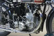 In 1928 Vincent acquired HRD Motors Ltd. and formed the Stevenage-based Vincent-HRD company; JAP and later on Rudge Python engines were used. In 1932 Phil Irving joined the company and by the end of 1934 the Vincent/Irving designed 498cc ohv engine was presented. It featured a high camshaft (“ Semi-overhead camshaft” as the company called it) and short pushrods angled at 62 degrees. The very advanced design had a spring frame, 7-inch duo brakes on interchangeable wheels, duplex primary chain in cast aluminium oil bath and a 4-speed Burman gearbox. A practical detail was the prop stand, of which the company claimed they were the first to standardise this. The 498 cc engine had bore x stroke dimensions of 84 x 90 mm and was used in several models of which the “Meteor” was the mildest-tuned machine. More highly tuned engines were available for the “Comet”, and “TT”.