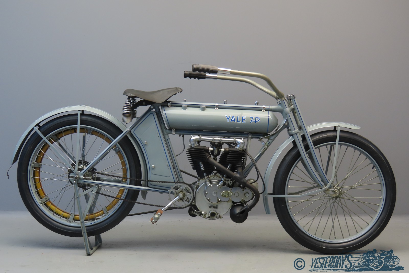 Yale was a foremost player in the first decade of American motorcycling. The make was marketed by the Consolidated Manufacturing Company of Toledo, Ohio. Originally the company made bicycles under the brand names of “Snell” an “Yale”. To make a flying start in motorcycle production the California Motorcycle Company was bought in 1903 and for its first five years the motorcycle was sold as the Yale-California. In 1909 the big single grew to 3½ HP and 473 cc displacement with a weight of 165 lb. and a top speed of 45 miles per hour. For 1909 a totally new model was presented and the California part of the name was dropped, ushering in the first true Yale motorcycle.
