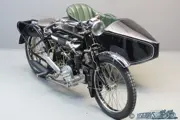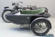 This mighty Zenith comes with a graceful Mills & Fulford sidecar. The combination has been eminently restored a number of years ago and comes with Lucas acetylene lighting system and leaf sprung Brooks saddle.