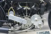In pre W.W. 1 days Zenith machines gained many successes; driving force was chief engineer Freddy Barnes, who was responsible for the famous “Gradua” gear. The mechanics of the Gradua gear were a variable engine pulley worked by a handle, with simultaneous correction of the belt length made by sliding the rear wheel backwards or forwards in the fork slots. Its advantage showed itself most effectively in speed hill climbs. The Zenith rider could change during the journey up while the other competitors had to make do with a single choice of gear ratio. Rival riders and manufacturers thought that this was an unfair advantage so many leading clubs barred Gradua gear Zeniths from their hill climbs. Zenith was quick to recognize the publicity value and took the word “barred” as their trademark. The Gradua gear system was relatively expensive and had lost its technical head start by the early twenties. In 1923 a switch to a conventional gearbox was made; that year a number of models was available with Gradua gear or with Sturmey Archer countershaft gearbox. By 1924 all models were equipped with Sturmey Archer boxes. This Model F is fitted with the very practical countershaft with clutch and kick starter that was available as an extra since 1914. The sturdy JAP engine has bore x stroke dimensions of 70 x 85 mm. The clutch is a “metal to metal” cone clutch that runs in oil. The contraption is positioned in front of the engine and chain driven from the crankshaft. Added advantage, so the company claimed, was the extra long belt “giving the unequalled sweetness of the belt drive, combined with lengthened life of belt”.