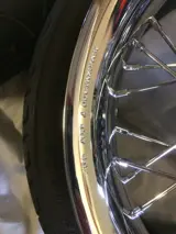 Harley twincam, set velgen met ronde rim, 19mm of 25mm wielas (deluxe) 16" x 3" met banden 130/90/16" +- 6 mm groef in prima staat700,-€+32495577180