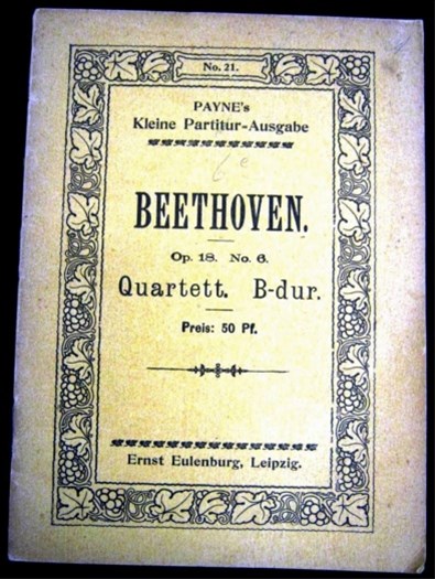 Antiek duits bladmuziekboekje met Strijkkwartet Nr.6 in Bes groot, opus 18/6