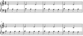 Deze zeer eenvoudige bladmuziek voor piano is geschreven in de meest eenvoudige zetting (niveau 1). Er wordt uitsluitend gebruik gemaakt van eenvoudige ritmes en notenbeelden. Moeilijke handelingen worden vermeden.