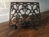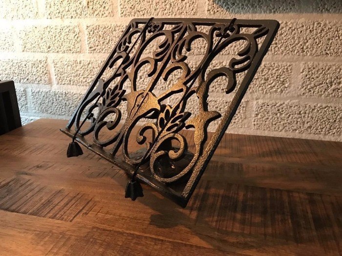 Een prachige boekenstandaard, gemaakt van gietijzer, voor bijvoorbeeld een kookboek.