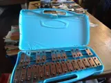 Klokkenspel, 25 tonig, g-g, in kunstof koffer,- de angel ax-25n2 is een klokkenspel van goede kwaliteit, voorgemonteerd in een mintblauwe plastic koffer. Hij is voorzien van 25 verzilverde klankblokken (2 octaven, g2-g4), welke op siliconen buffers rusten om de klank te dempen en langer te laten klinken. De behuizing heeft speciale gaten onder de klankblokken om een natuurlijk geluid te creëren en de toon langer te laten klinken (sustain). Meer volume en resonantie wordt bereikt door de 4 pootjes onder het instrument uit te klappen. Er is geen minimum of maximum leeftijd verbonden aan het bespelen van het klokkenspel (ook wel glockenspiel genoemd). Het is een perfect instrument voor kinderen en beginners om in aanraking te komen met het maken van muziek, wat het creatieve denken van de (jonge) mens kan bevorderen. De ax-25n2 is makkelijk mee te nemen en daardoor ook voor muziekverenigingen en muziekscholen ideaal. Uiteraard kunt u de angel ax-25n2 ook gewoon thuis gebruiken, want door zijn compacte formaat en het feit dat hij in de koffer is ingebouwd maakt dat hij makkelijk tevoorschijn te halen is en even makkelijk weer op te bergen. De angel ax-25n2 wordt geleverd met 2 kunststof stokken met bolvormig uiteinde.- Deze ontbreken -21,50