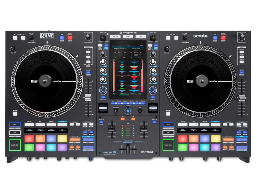 Met standalone Stems voer je live blends en remixes uit via Instant Acapella- en Instrumental-knoppen, Stems-padmodus en Stem Level EQ. De Rane System One beschikt over meer dan 25 Main FX met aluminium toggle-activering, plus Sweep FX, Touch FX en Fader FX. De 16 RGB-performancepads met OLED-displays tonen Hot Cue-namen, Stem-elementen en beat-divisions.