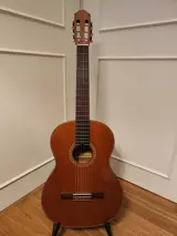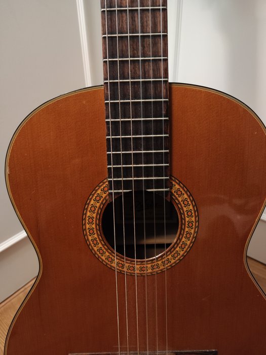 Mooie gitaar van het merk Aria. Model AC-7, gemaakt in de jaren 70 in Japan. De gitaar is gemaakt van kwaliteits hout en heeft een mooie tekening. De gitaar speelt soepel en heeft een vol en warm geluid. Normale gebruikssporen voor een 50 jaar oude gitaar.