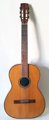 Het label van de gitaarbouwer is niet meer aanwezig, maar de gitaar is herkenbaar aan het hout, de constructie en vooral de toetsmarkeringen aan de zijkant.