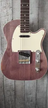 Custom LAGHI gitaar handgemaakt met de beste materialen door een gitaarbouwer. Bijzonder (uniek) Telecaster model. De body is van eerste keuze rood elzenhout met een ivoorkleurige binding rond de voorkant, een licht mauve geoliede afwerking en vervolgens gelakt en gepolijst met een buffer waardoor het een look krijgt die het hout onthult door transparantie, een 3-laagse oude witte slagplaat. De hals is van esdoorn met een vintage honingkleurige lak. De toets is palissander, 21 medium-jumbo frets en een 9,5 inch radius en een 25,5 inch Fender type mensuur. Mechanica zijn KLUSON.