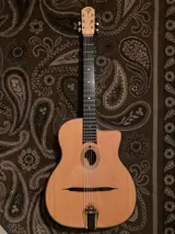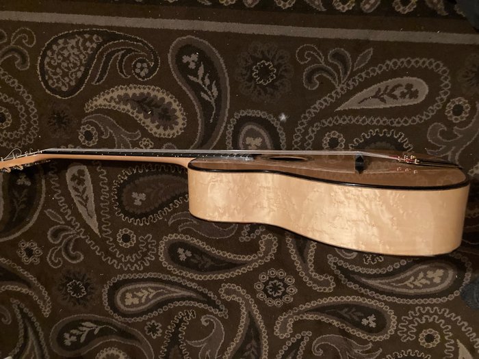 En dus bijna geen krassen of slijtage! Hij heeft een mooie toon en speelt makkelijk voor gitaristen. Deze gitaar is heel populaire voor de Gypsy jazz spelers en blijft zijn waarde houden hoe ouder deze gitaar zijn hoe beter voor de gitaristen! Wand hij is gemaakt van de beste hout soorten zie bij de foto’s een foto met de hout soort beschrijving. En is een prachtige gitaar om te zien en op te spelen!