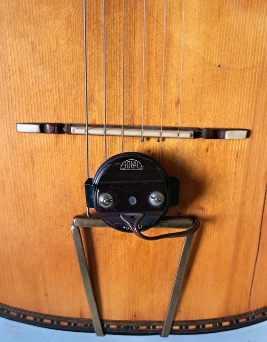 Destijds elektro-akoestisch gemaakt door een microfoon die op het staartstuk landt (merk Ideal - Duitsland) uit de jaren 50.