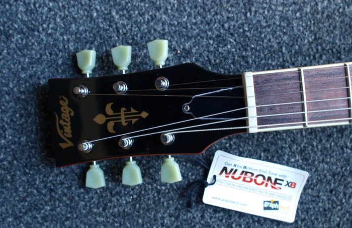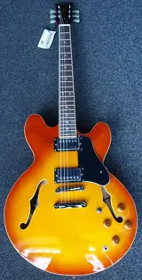De Vintage VSA500HB is een double cutaway semi-hollowbody gitaar, uitgevoerd in Honeyburst. Een uiterst betaalbaar alternatief voor een legendarische 335-model gitaar. De body is vervaardigd uit gelamineerde esdoorn houtdelen. Een mahonie toonblok zorgt voor een verbinding tussen het bovenblad en achterkant, ook is dit de juiste plaats om twee humbuckers te monteren. De hals is van mahonie en verlijmd met de body, dit is sterk en zorgt voor voldoende sustain. Veel hardware is afkomstig van Wilkinson. De afwerking, toon en bespeelbaarheid zijn in dit prijssegment van een buitengewoon hoog niveau. De gebruikte Wilkinson elementen voor deze VSA500HB zijn keramisch en leveren een perfecte balans tussen heldere en warme karakters.