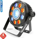 De BX96 is een zeer heldere en multifunctionele PAR. De 9x 9W sterke 6-in-1 RGBWA-UV LEDs zorgen voor een strak wash effect. Het centrale gedeelte van deze PAR is voorzien van een flinke RGBW COB LED; de COB technologie biedt een zeer intense lichtbundel, dit wordt geproduceerd door meerdere kleine LED chips bij elkaar te plaatsen waardoor er een kleine maar zeer krachtige module wordt gecreëerd. Rond de centrale COB LED is er een witte SMD LED-ring geplaatst die tevens kan worden gebruikt als stroboscoop effect, met als resultaat een adembenemend effect! Het ingebouwde LED- bedieningspaneel met slechts 4 knoppen is makkelijk in gebruik en biedt de volledige controle over het toestel. De BX96 beschikt over master/slave instellingen, geluidsactieve modus, ingebouwde programmas, automatische modus, voorgeprogrammeerde kleuren en een fade/strobe effect voor een ruimte vullende lichtshow. Gebruik de meegeleverd infrarood afstandsbediening voor rechtstreekse bediening van de PAR. De BX96 is uitgerust met een standaard IEC in/uitgang en een 3-pin DMX aansluiting! De solide en toch lichtgewicht behuizing word koel gehouden met behulp van de stille interne ventilator. De dubbele beugel knoppen die bij deze BX96 worden geleverd, zorgen voor zeer eenvoudige montage.