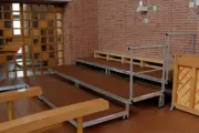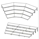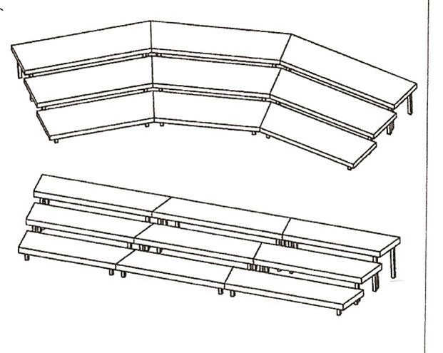 Onze koorpodia zijn gemaakt van podiumelementen met insteekpoten en zijn zo gemaakt dat u er een rechte of gebogen opstelling mee kan bouwen. De diepte van een podiumdeel varieert van 50 cm tot 100 cm, wilt u staan heeft u 50 cm nodig en voor een opstelling met stoelen 80 cm. De niveaus lopen op met 20 / 30 / 40 cm, maar in principe is het mogelijk om een koorpodium op maat te bestellen. Belangrijk is de beschikbare ruimte ( breedte / diepte / hoogte ) - aantal personen - aantal rijen - en wat voor vloer u wilt.