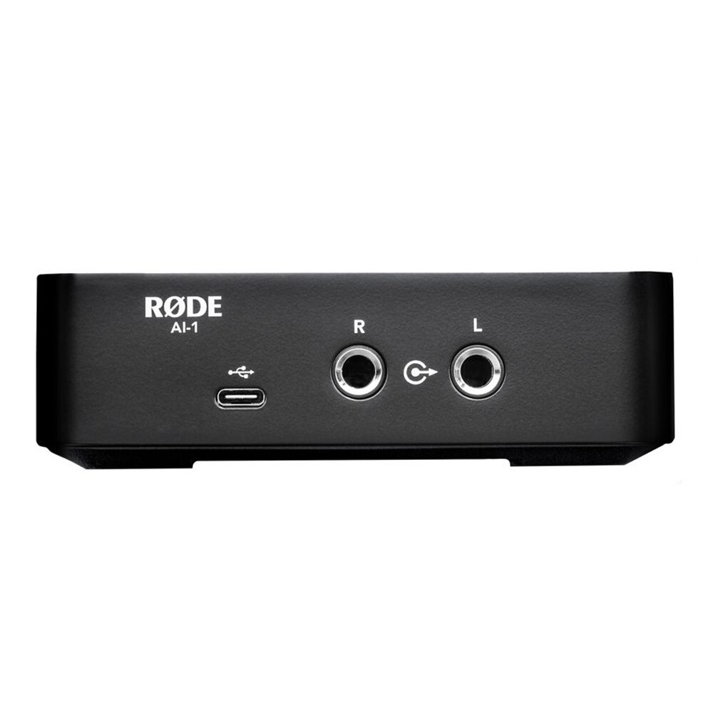 De Rode AI-1 is een audio-interface van studiokwaliteit die zeer geschikt is voor het opnemen van zang, instrumenten en voice-overs op je Mac of Windows computer. De interface heeft een enkele combo XLR-1/4" ingang met fantoomvoeding, twee gebalanceerde 1/4" monitoruitgangen en een enkele discrete hoofdtelefoonuitgang van studiokwaliteit met niveauregeling. Het apparaat kan werken in zero-latency monitoring modus, die de voorversterker rechtstreeks verbindt met de hoofdtelefoonuitgang voor vertragingsvrije prestaties tijdens het opnemen. Als de hoofdtelefooningang is ingeschakeld, worden de twee monitoruitgangen overgeslagen. Om de monitoruitgangen in te schakelen haal je gewoon de hoofdtelefoonplug uit de aansluiting.