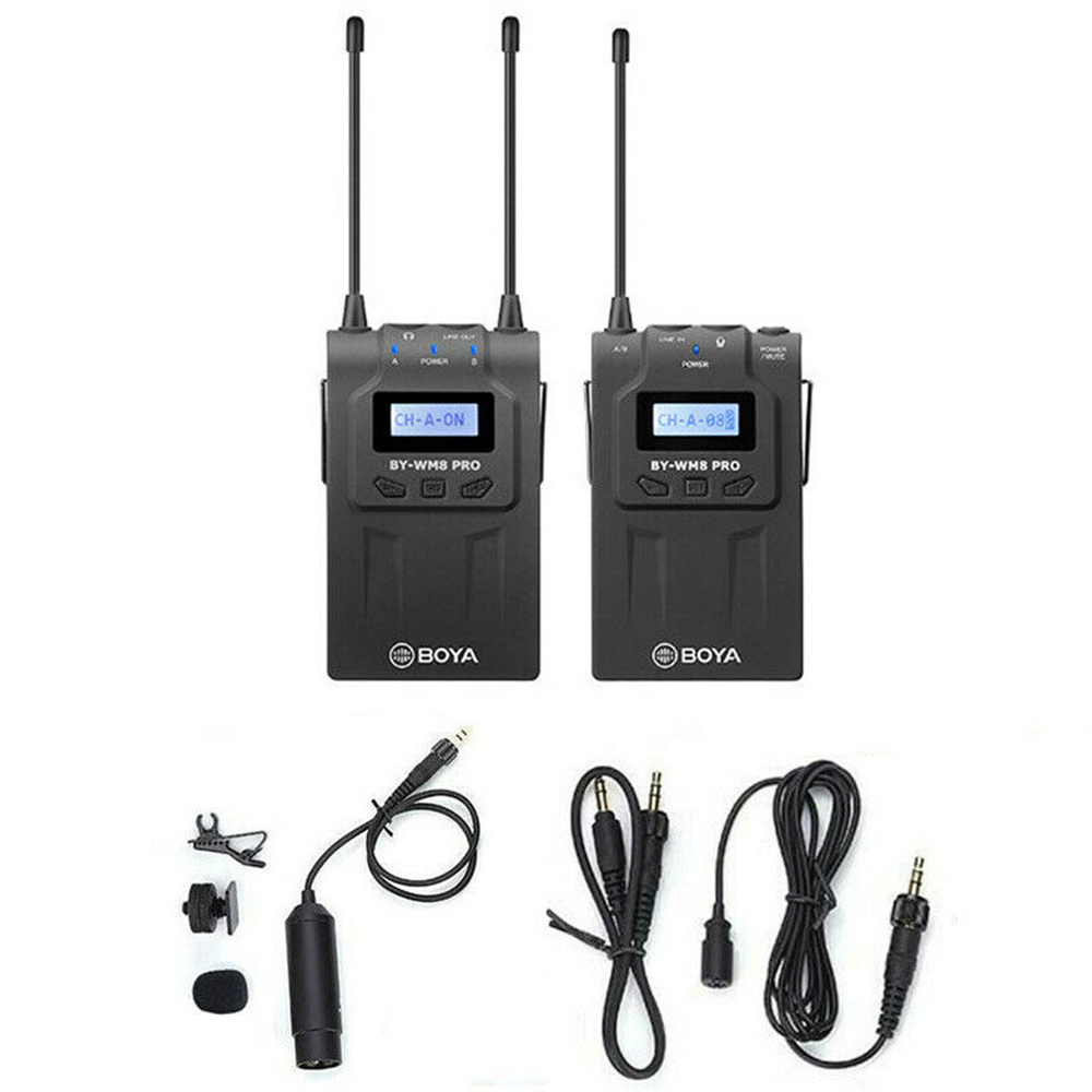 De Boya UHF Duo Lavalier Microfoon Draadloos BY-WM8 Pro-K1 is een draadloze microfoonset, welke ideaal is voor interviews, ENG/EFP, filmproducties en meer. De BY-WM8 Pro-K1 is een upgrade van de draadloze duo microfoonsets BY-WM6 en BY-WM8. Zo heeft de pro-versie een veel lagere distortion-rate, waardoor het geluid minder overstuurd wordt. De geluidskwaliteit is daarmee aanzienlijk verbeterd. Daarnaast is de set lichter van gewicht dan zijn voorganger.