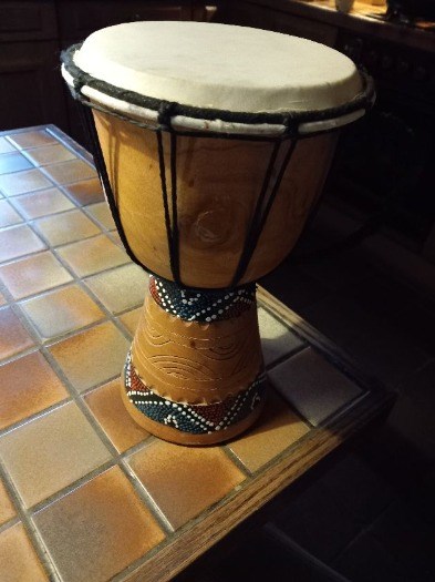 Afrikaanse trommel, - van hout, mooie versiering,- 30 cm, z.g.a.n.- DOE EEN BOD, vanaf 15,- . Ga ik akkoord met je bod dan krijg je bericht