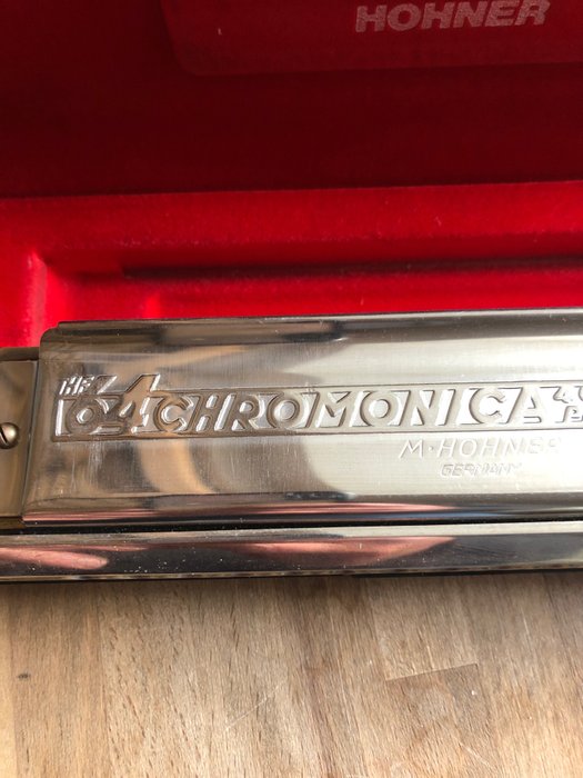 Professionele 280 C chromatische mondharmonica, merk Conad, in staal en hout. Voor zover ik kan nagaan speelt hij alle octaven, hij is nauwelijks gebruikt, zeker de laatste vijf jaar niet.