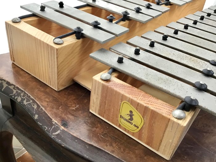 Studio49 sGC - Chromatische metalen sopraan xylofoon/glockenspiel in goede staat, compleet met 4 stokken van 21 cm lengte met ronde houten kop.