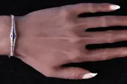 This striking Art Deco bracelet, with a hint of Belle Époque elegance, hails from the Netherlands circa 1920. It features a captivating four-point star composed of 35 sapphires, set in an 18K white gold top, contrasted with an 18K yellow gold engraved base. This star is encircled by 68 single brilliant cut diamonds, creating a dazzling display. Two old European cut diamonds further define the star's boundary, making this bracelet a luxurious piece of wrist candy. The fusion of sapphires and diamonds in this bi-color gold setting exemplifies the intricate craftsmanship and artistic flair of the era.