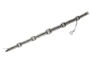 An exquisite example of 1920s Art Deco design, this platinum bracelet showcases a harmonious interplay of old brilliant-cut diamonds and sleek onyx inlays. With 167 diamonds weighing approximately 6.60 carats, the central old brilliant-cut stones radiate against the black onyx, creating a striking contrast typical of the period. The geometric symmetry and hand-engraved sides reflect the elegance and craftsmanship synonymous with the Art Deco era, making this bracelet a timeless statement of glamour and sophistication.