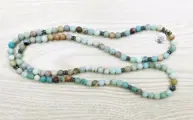 De mala bestaat uit 108 kralen, geregen aan een elastisch koord, en kan als armband of als ketting gedragen worden. De totale lengte is circa 95 cm. De bedel heeft een diameter van circa 1,4 cm.