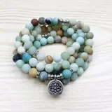 Aan deze prachtige mala hangt een mooie (dubbelzijdige) Levensboom bedel. De levensboom staat symbool voor wijsheid, bescherming, kracht, overvloed, schoonheid, en verlossing. Ook is de levensboom natuurlijk een symbool voor het leven zelf. Met zijn wortels in de aarde heeft hij contact met de onderwereld. Met zijn takken reikt hij naar de hemel. Hij is een bemiddelaar tussen goden en mensen.